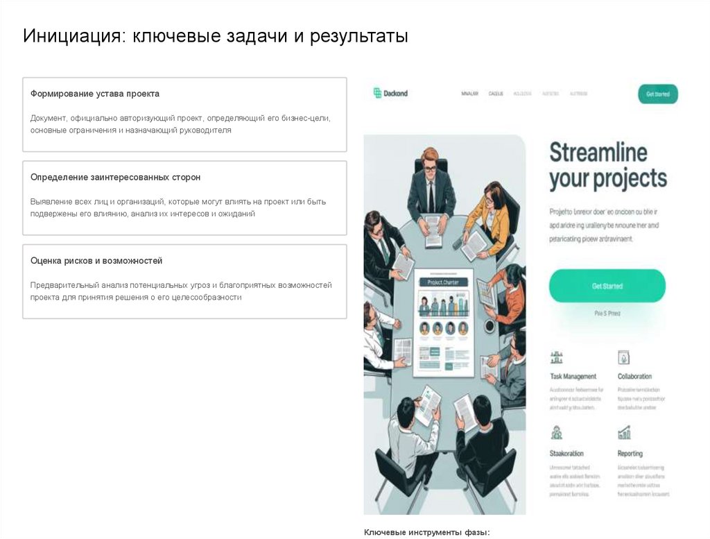 Инициация: ключевые задачи и результатыФормирование устава проекта