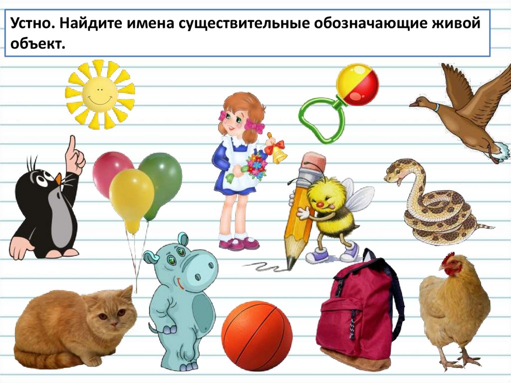 Устно. Найдите имена существительные обозначающие живойобъект.