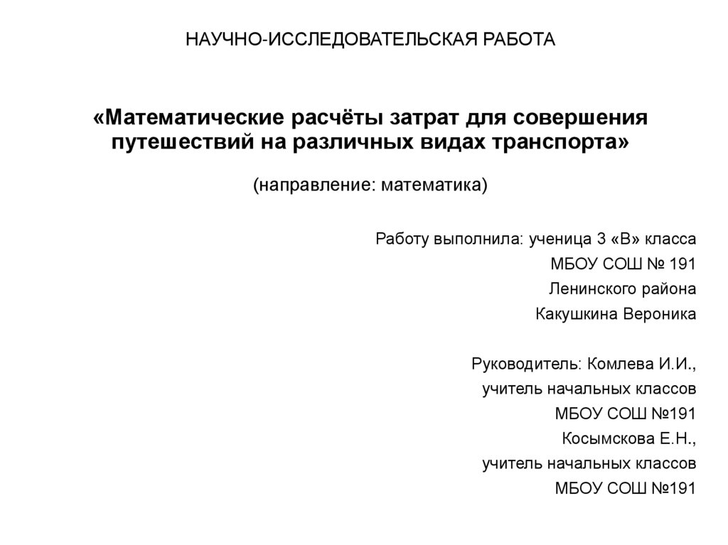 НАУЧНО-ИССЛЕДОВАТЕЛЬСКАЯ РАБОТА«Математические расчёты затрат для совершения