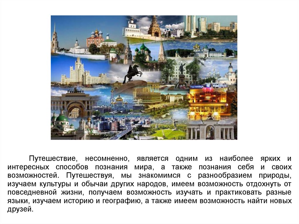 Путешествие, несомненно, является одним из наиболее ярких иинтересных способов познания мира, а также познания себя и своих
