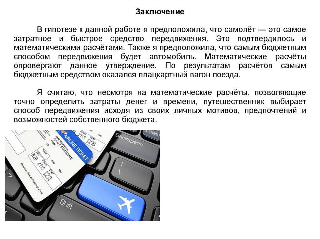 ЗаключениеВ гипотезе к данной работе я предположила, что самолёт — это самое
