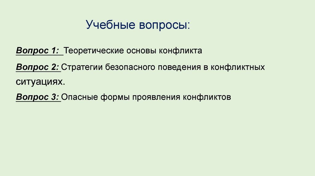 Учебные вопросы:Вопрос 1: Теоретические основы конфликта