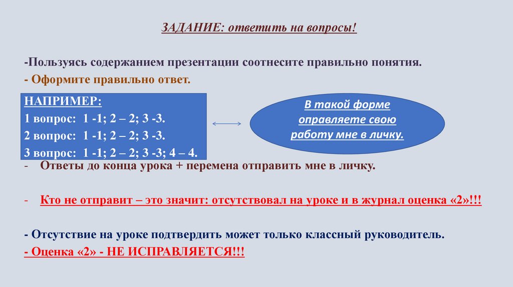 ЗАДАНИЕ: ответить на вопросы!-Пользуясь содержанием презентации соотнесите правильно понятия.