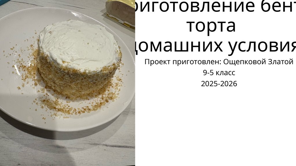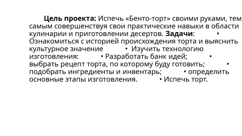 Цель проекта: Испечь «Бенто-торт» своими руками, темсамым совершенствуя свои практические навыки в области