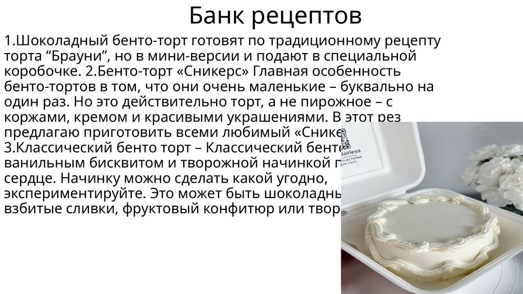 Банк рецептов1.Шоколадный бенто-торт готовят по традиционному рецепту