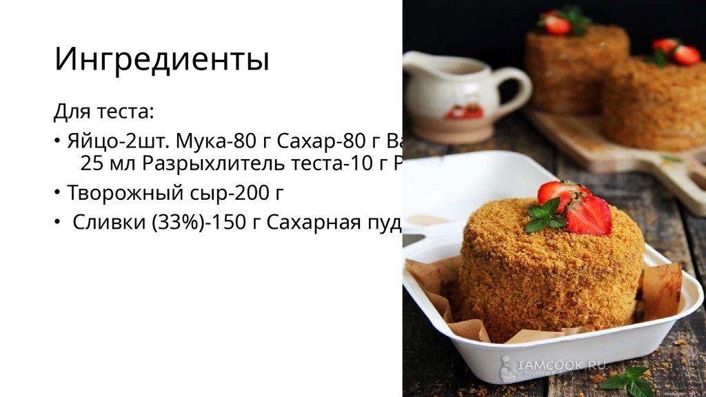 25 мл Разрыхлитель теста-10 г Растительное масло-20 г Для кр
