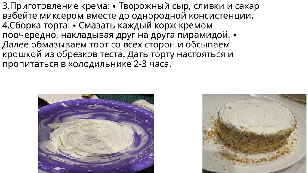 4.Сборка торта: ⦁ Смазать каждый корж кремом