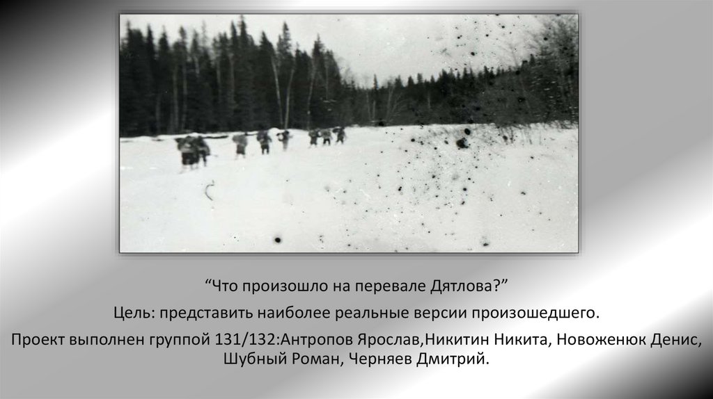 “Что произошло на перевале Дятлова?”Цель: представить наиболее реальные версии произошедшего.