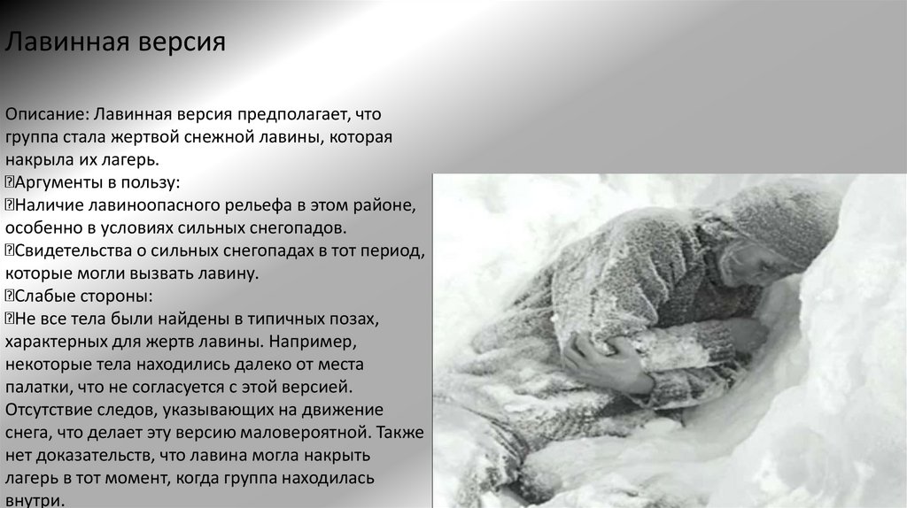 нет доказательств, что лавина могла накрыть