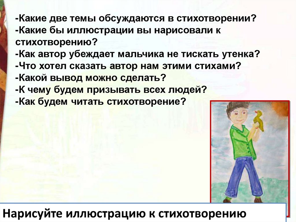 -Какие две темы обсуждаются в стихотворении?-Какие бы иллюстрации вы нарисовали к
