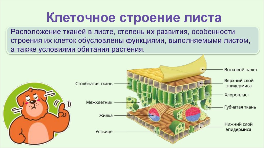 Клеточное строение листаРасположение тканей в листе, степень их развития, особенности