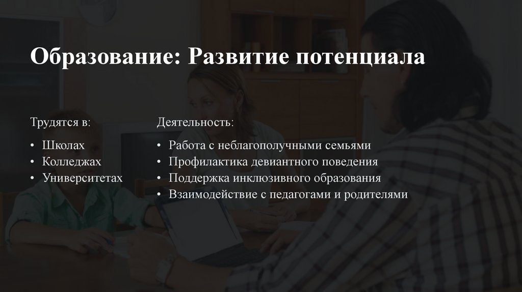 Образование: Развитие потенциалаТрудятся в: