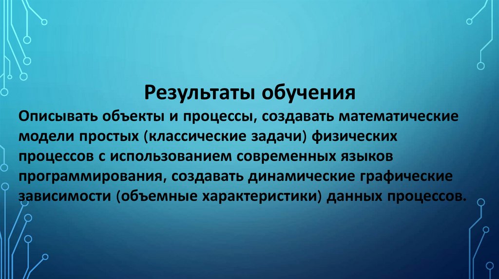 Результаты обученияОписывать объекты и процессы, создавать математические