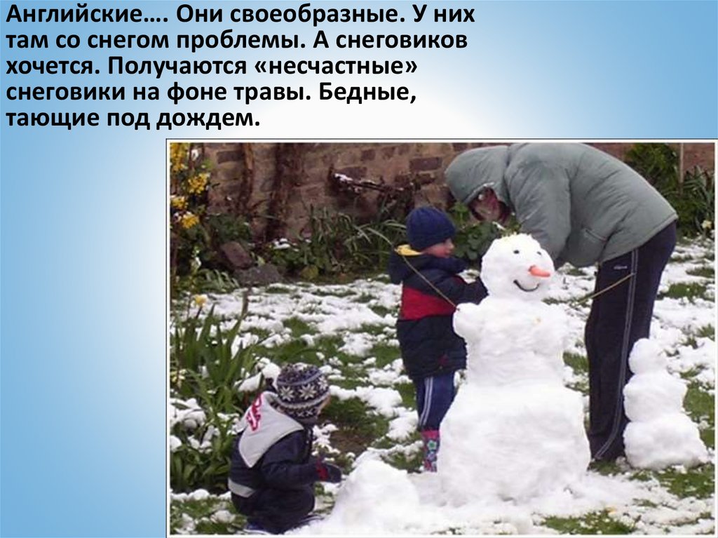 Английские…. Они своеобразные. У нихтам со снегом проблемы. А снеговиков
