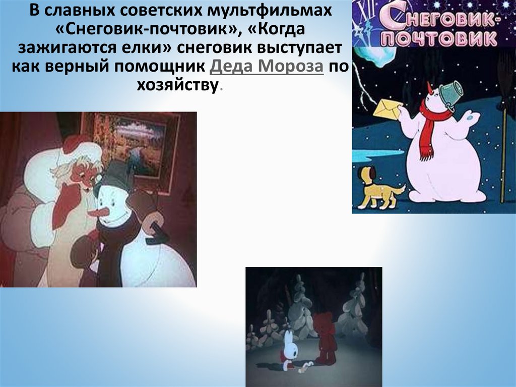 В славных советских мультфильмах«Снеговик-почтовик», «Когда