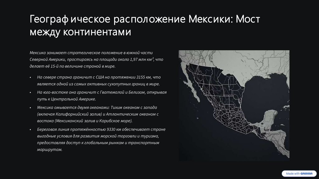 Географическое положение Мексики играет ключевую роль в её экономическом развитии и международной интеграции.