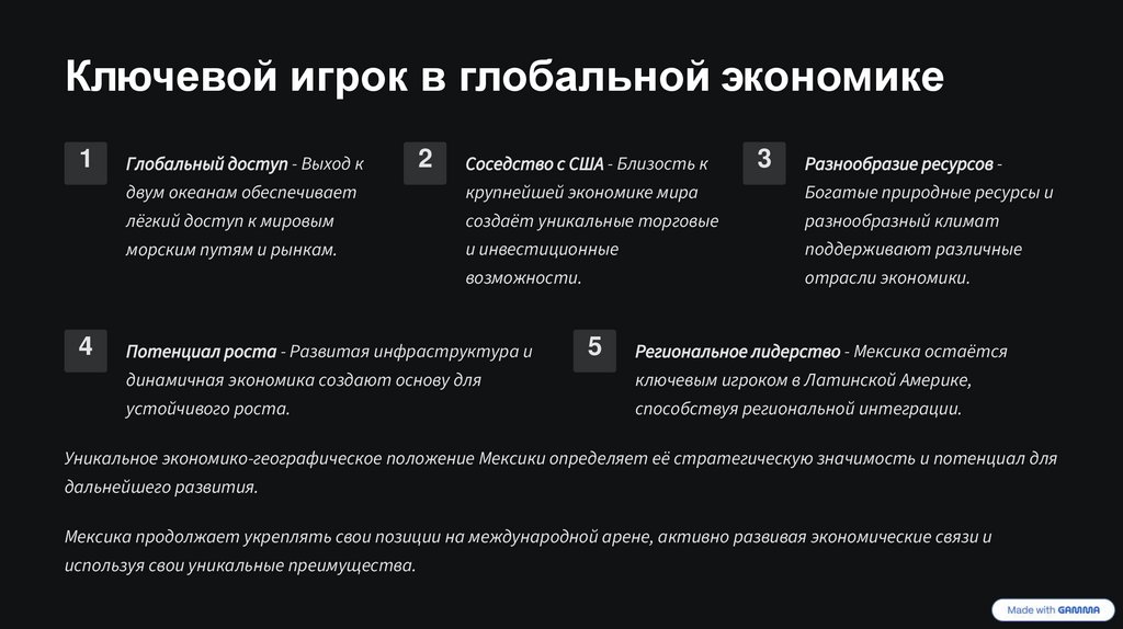 Уникальное экономико-географическое положение Мексики определяет её стратегическую значимость и потенциал для