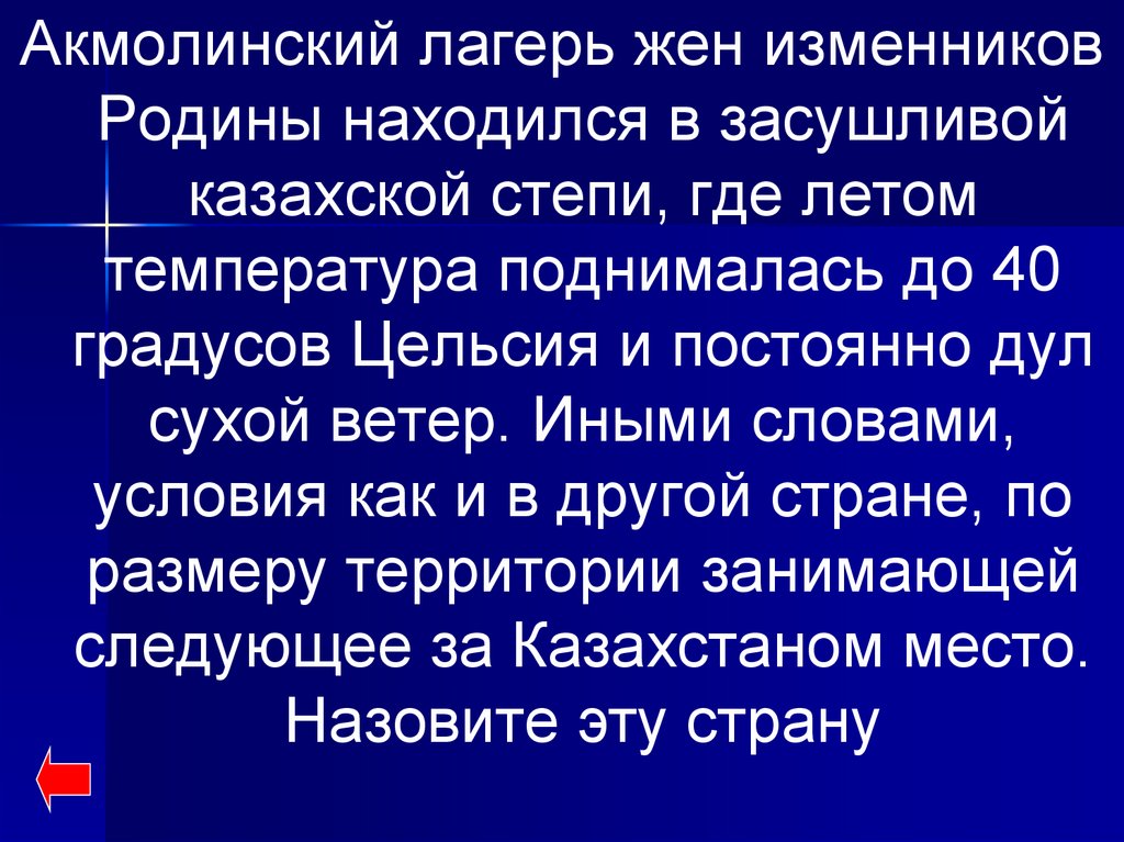 Акмолинский лагерь жен изменниковРодины находился в засушливой