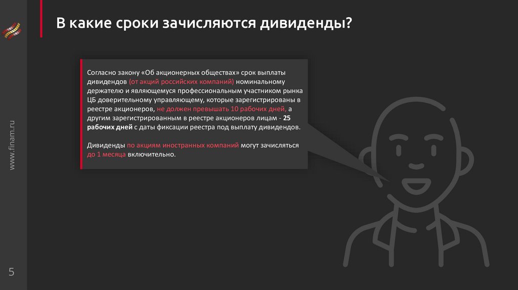 www.finam.ruВ какие сроки зачисляются дивиденды?