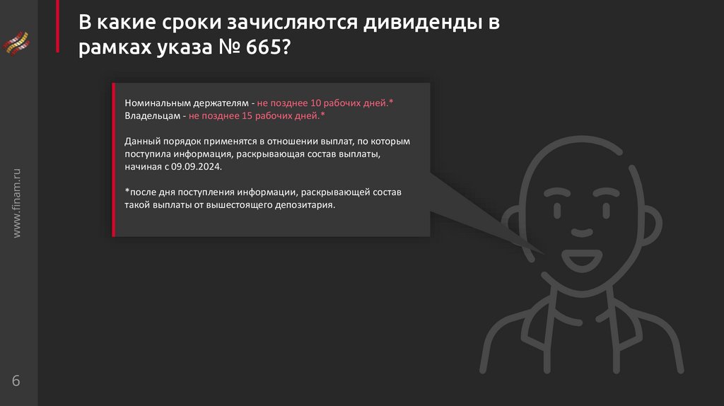 В какие сроки зачисляются дивиденды врамках указа № 665?
