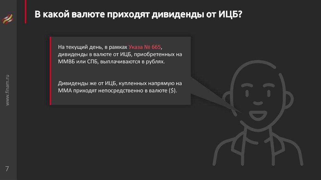 В какой валюте приходят дивиденды от ИЦБ?www.finam.ru