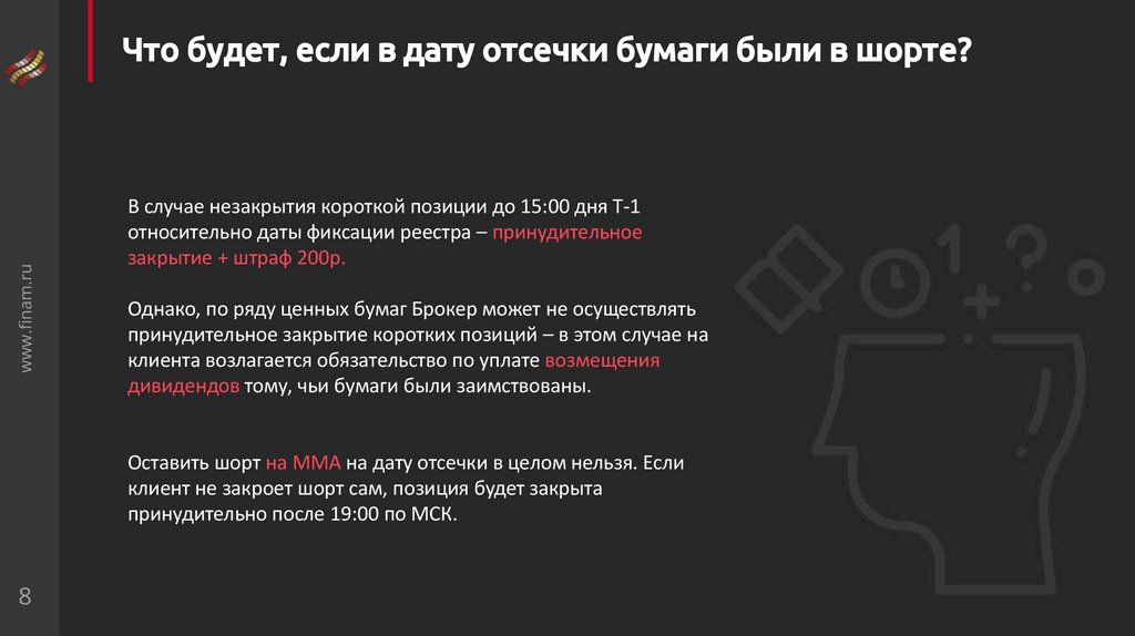 www.finam.ruЧто будет, если в дату отсечки бумаги были в шорте?