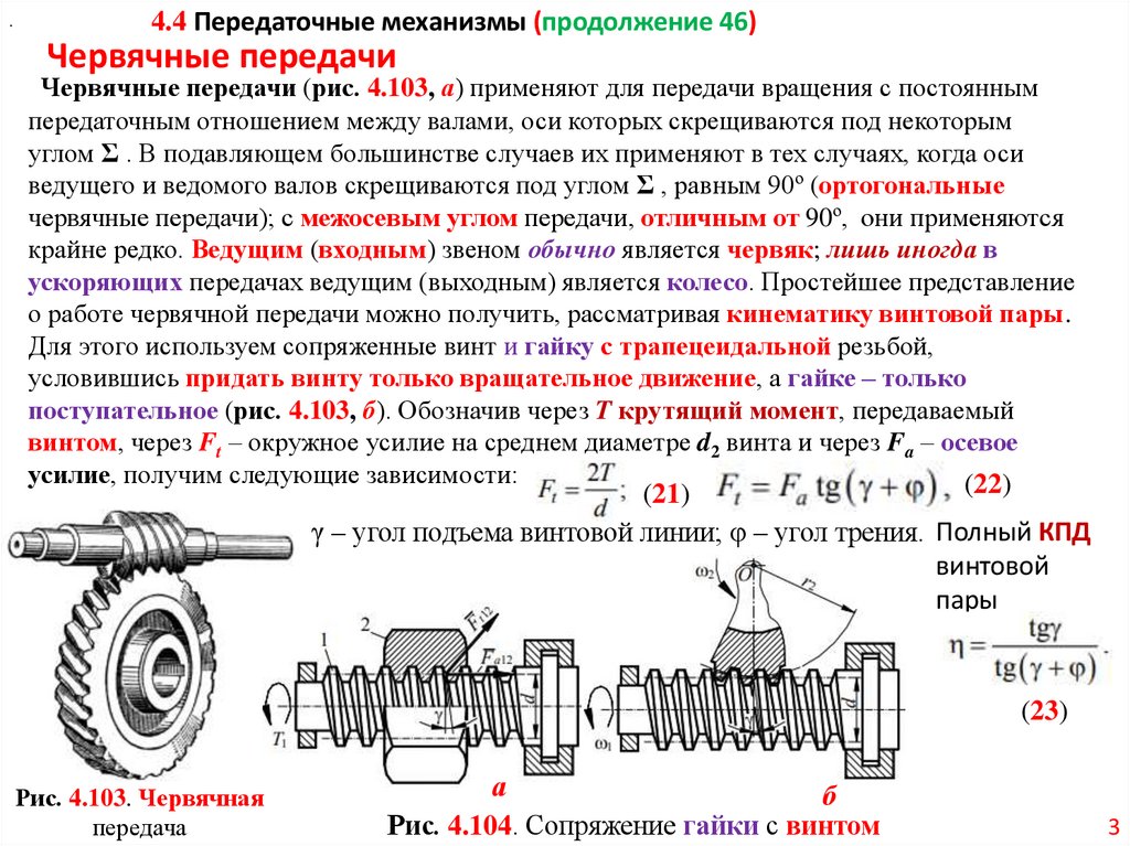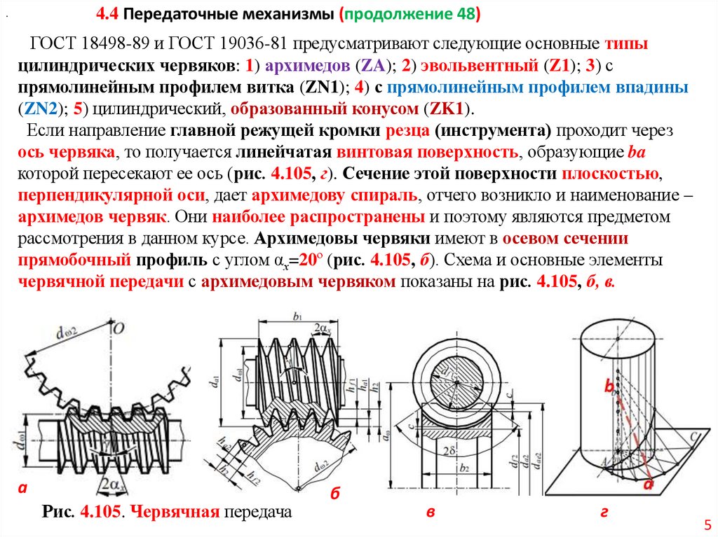 архимедов червяк. Они наиболее распространены и поэтому являются предметом
