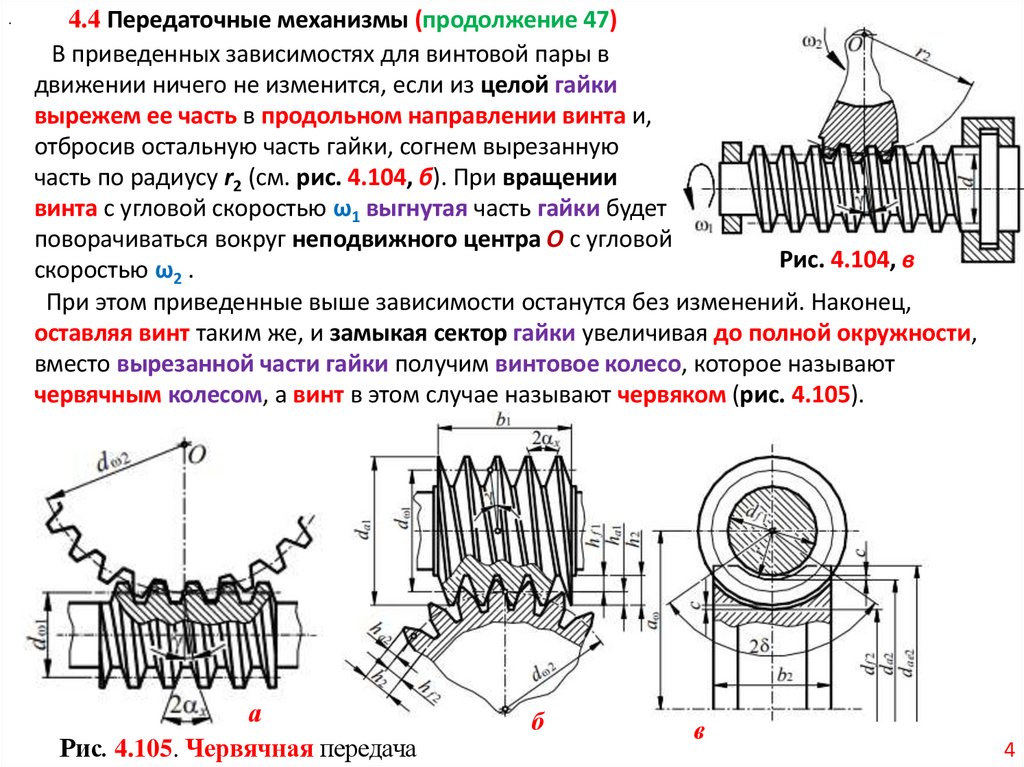 червячным колесом, а винт в этом случае называют червяком (рис. 4.105).