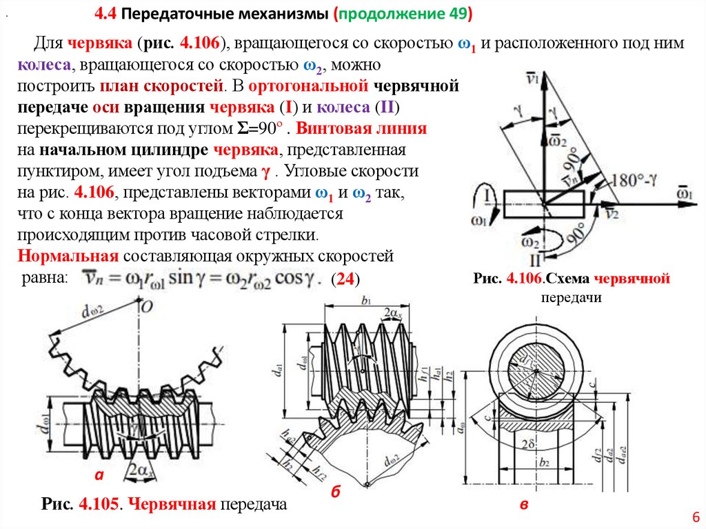 Для червяка (рис. 4.106), вращающегося со скоростью ω1 и расположенного под ним