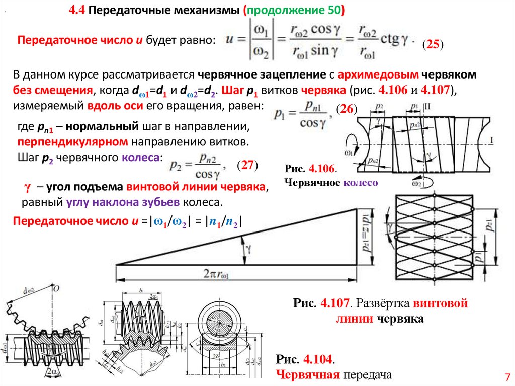 рассмотрения в данном курсе. Архимедовы червяки имеют в осевом сечении