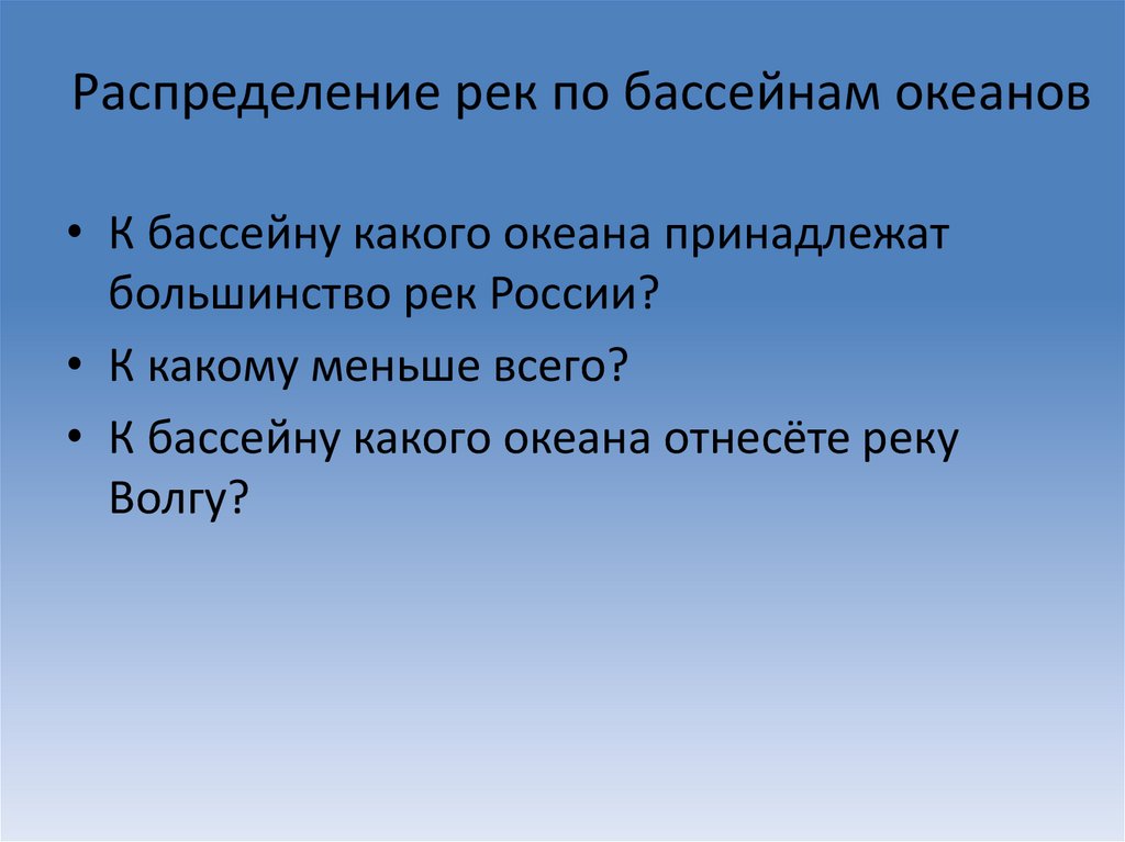Распределение рек по бассейнам океанов• К бассейну какого океана принадлежат