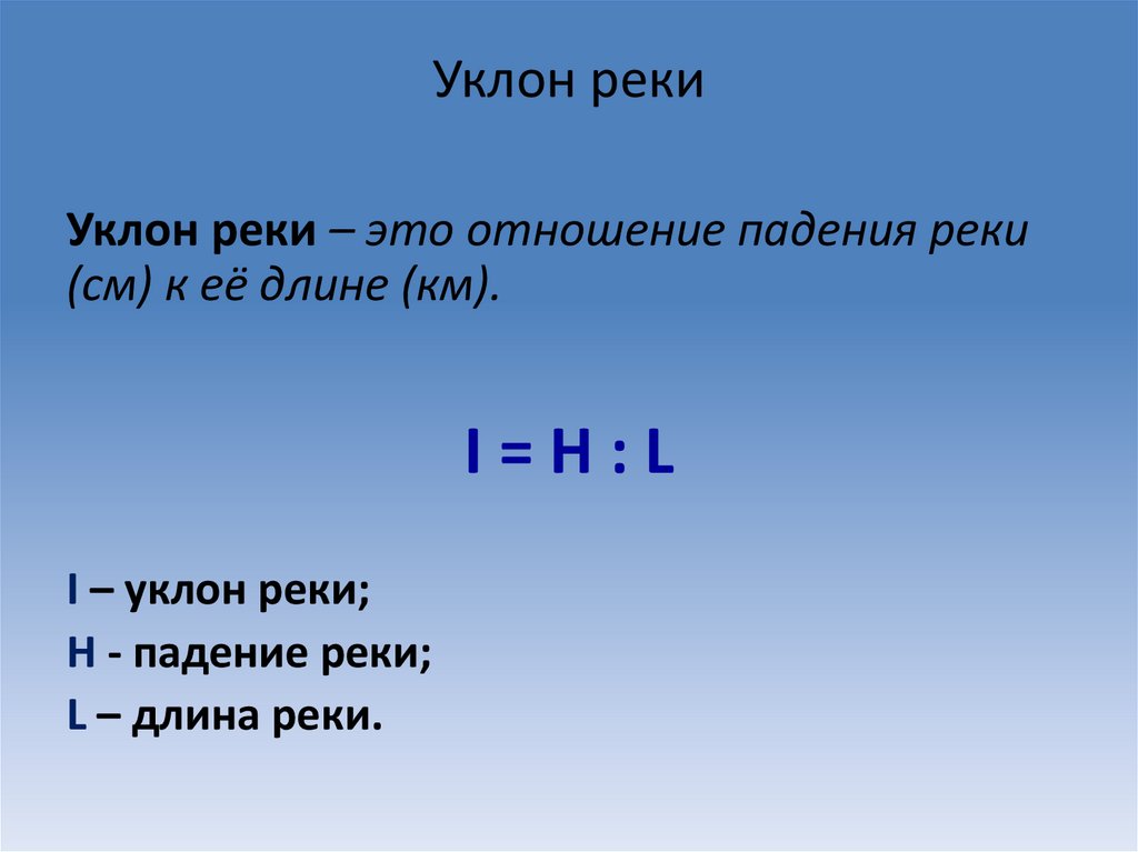 Уклон рекиУклон реки – это отношение падения реки