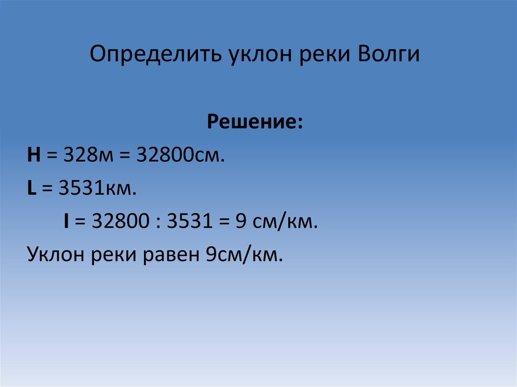 Определить уклон реки ВолгиРешение: