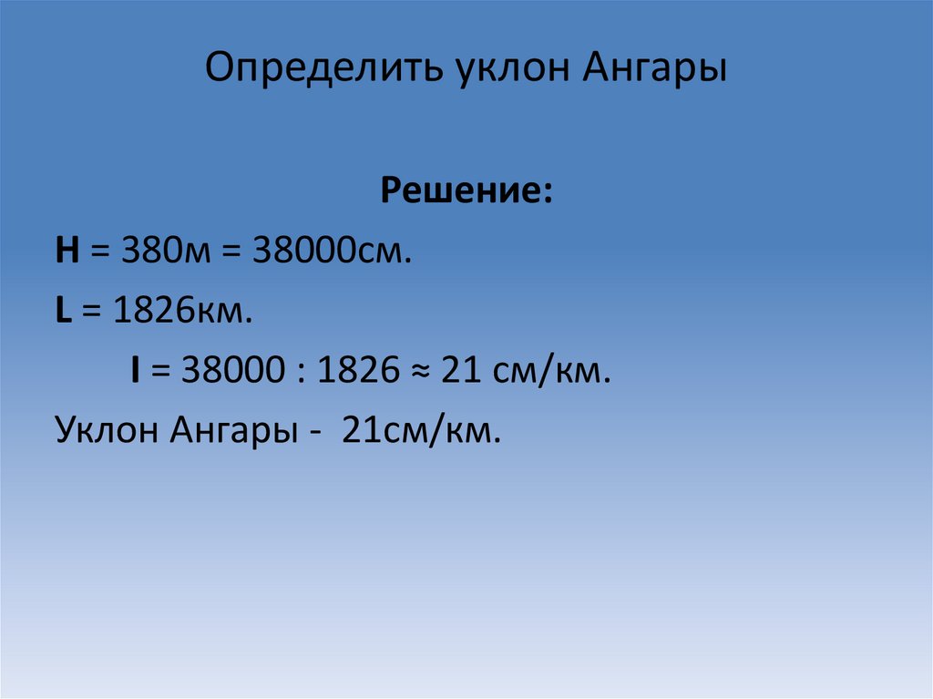 Определить уклон АнгарыРешение: