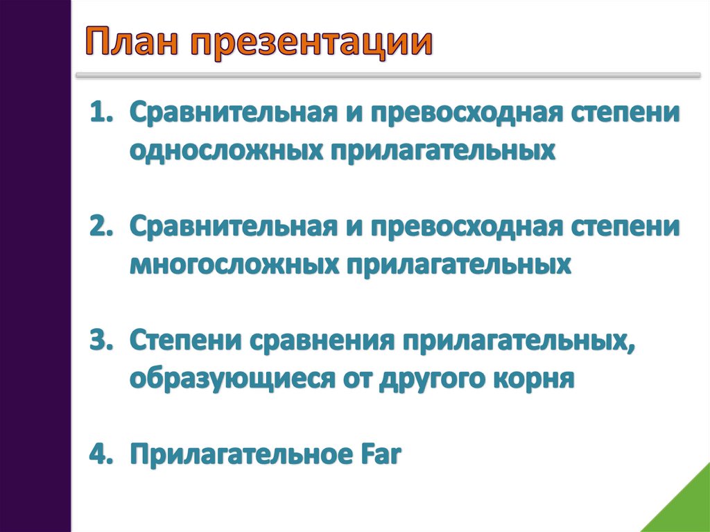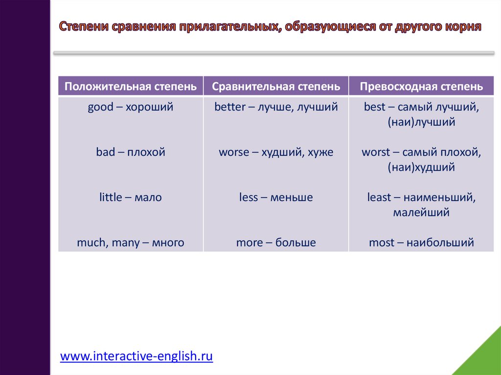 Положительная степень Сравнительная степеньПревосходная степень