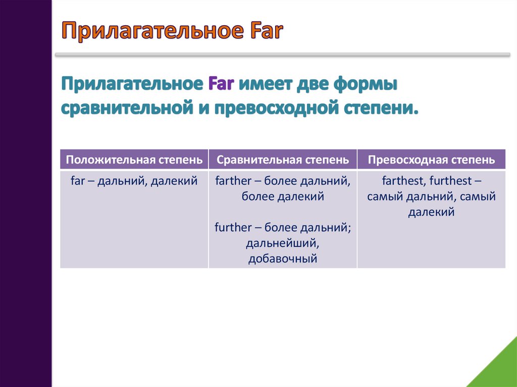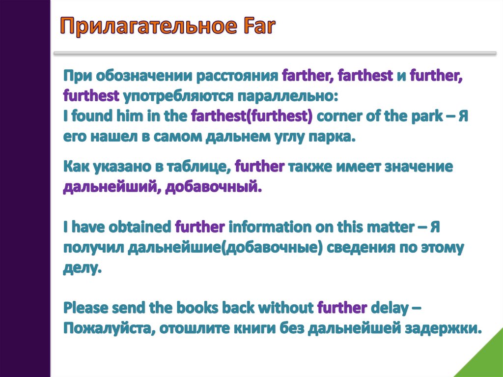 further – более дальний;
