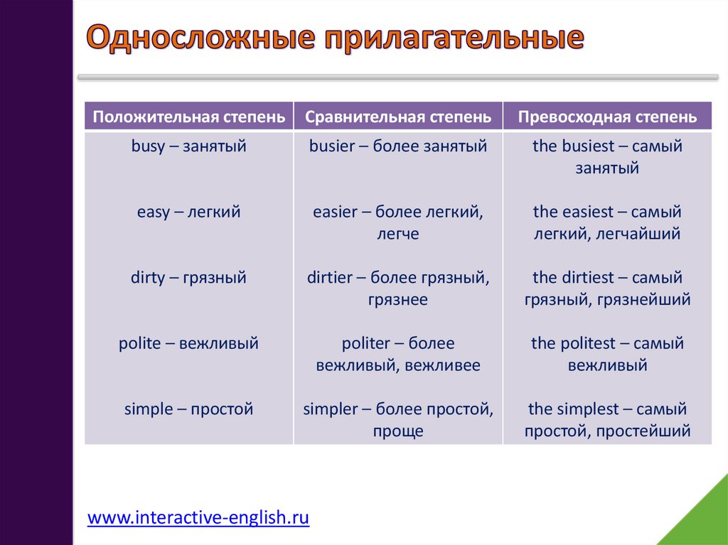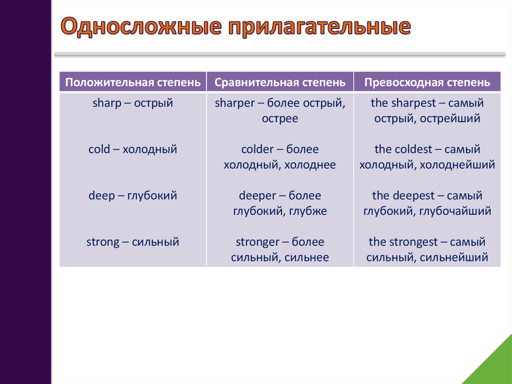 Положительная степеньСравнительная степень