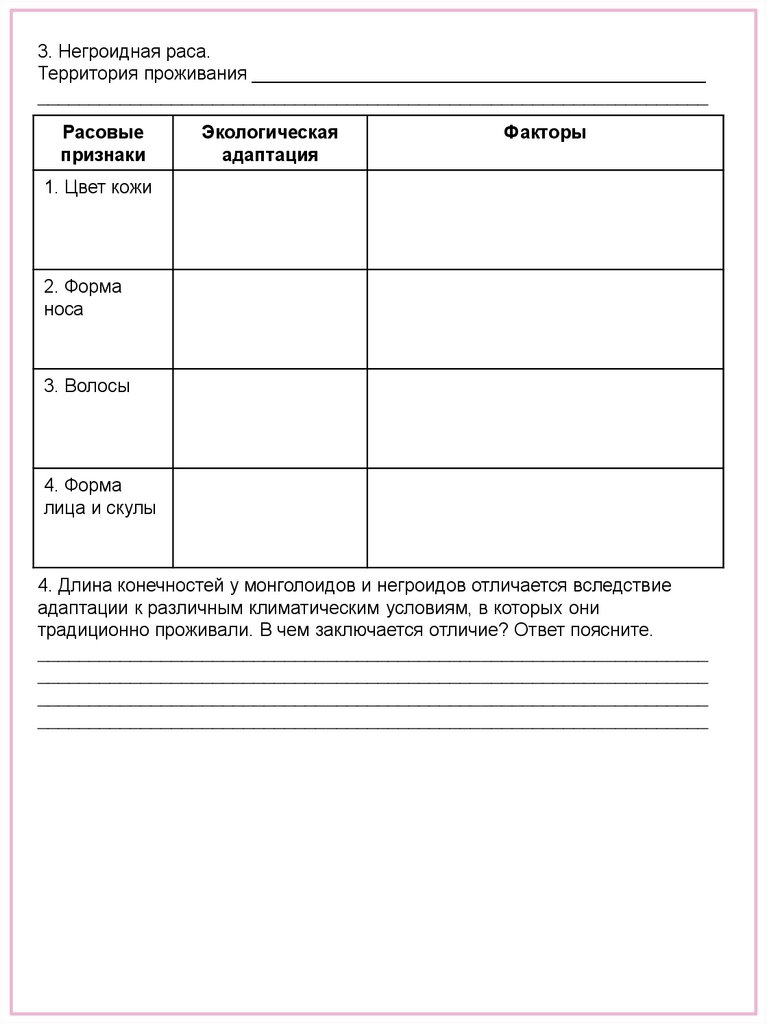3. Негроидная раса.Территория проживания ____________________________________________