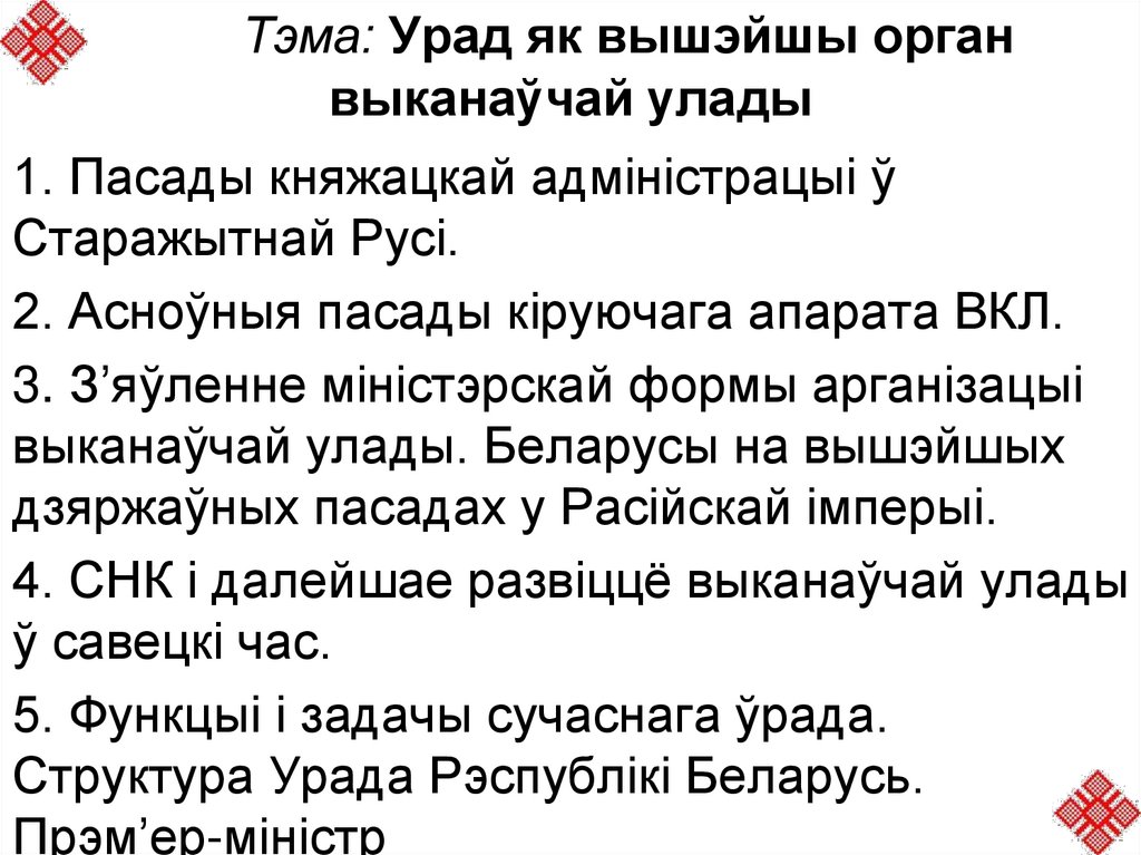 1. Тэма: Урад як вышэйшы орган выканаўчай улады