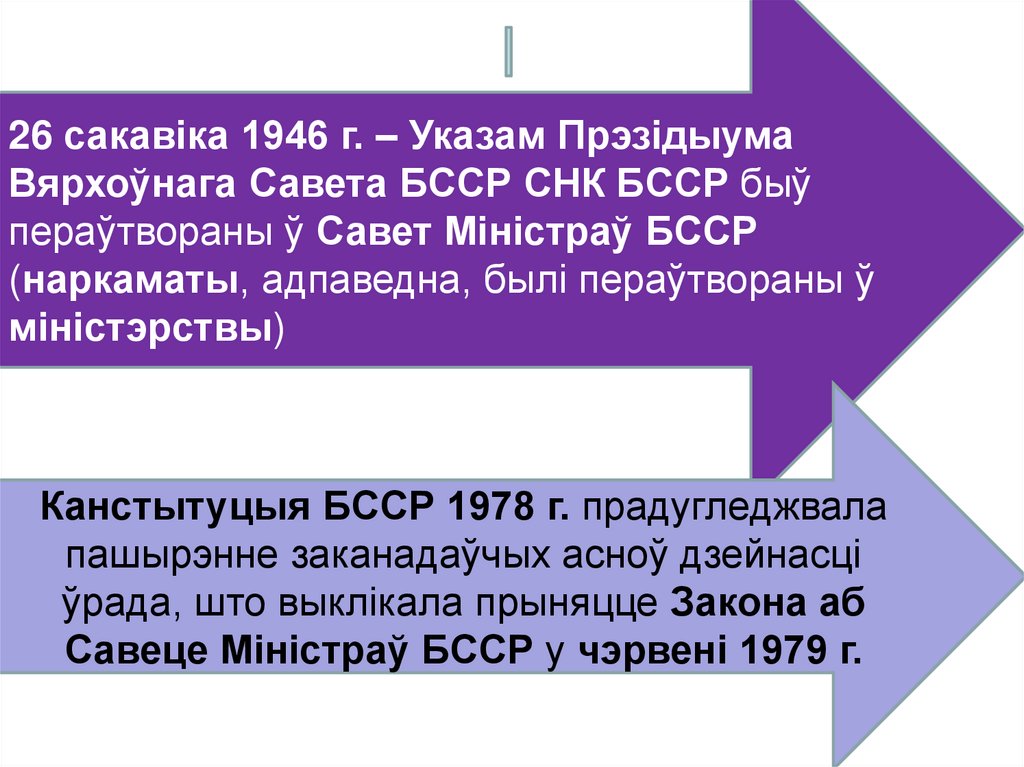 26 сакавіка 1946 г. – Указам ПрэзідыумаВярхоўнага Савета БССР СНК БССР быў