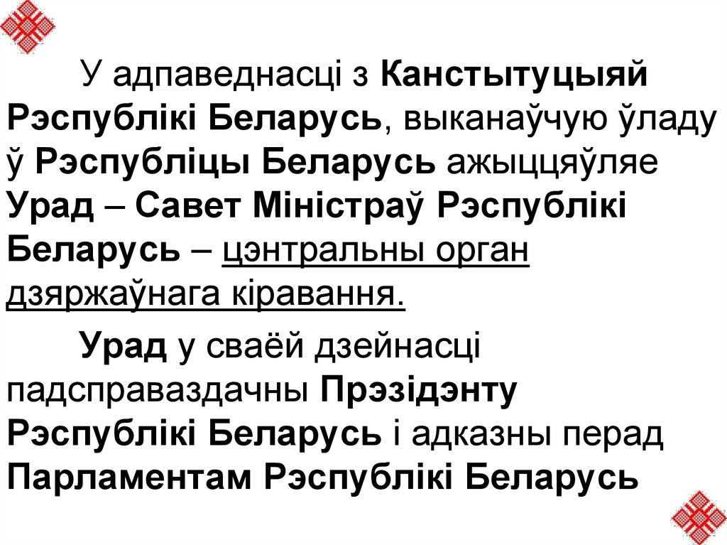 Функцыі Урада (арт. 107):- кіруе сістэмай падпарадкаваных яму