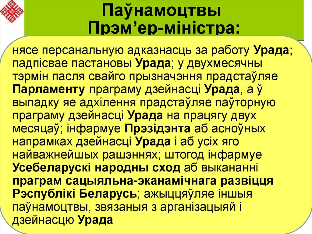 ПаўнамоцтвыПрэм’ер-міністра: