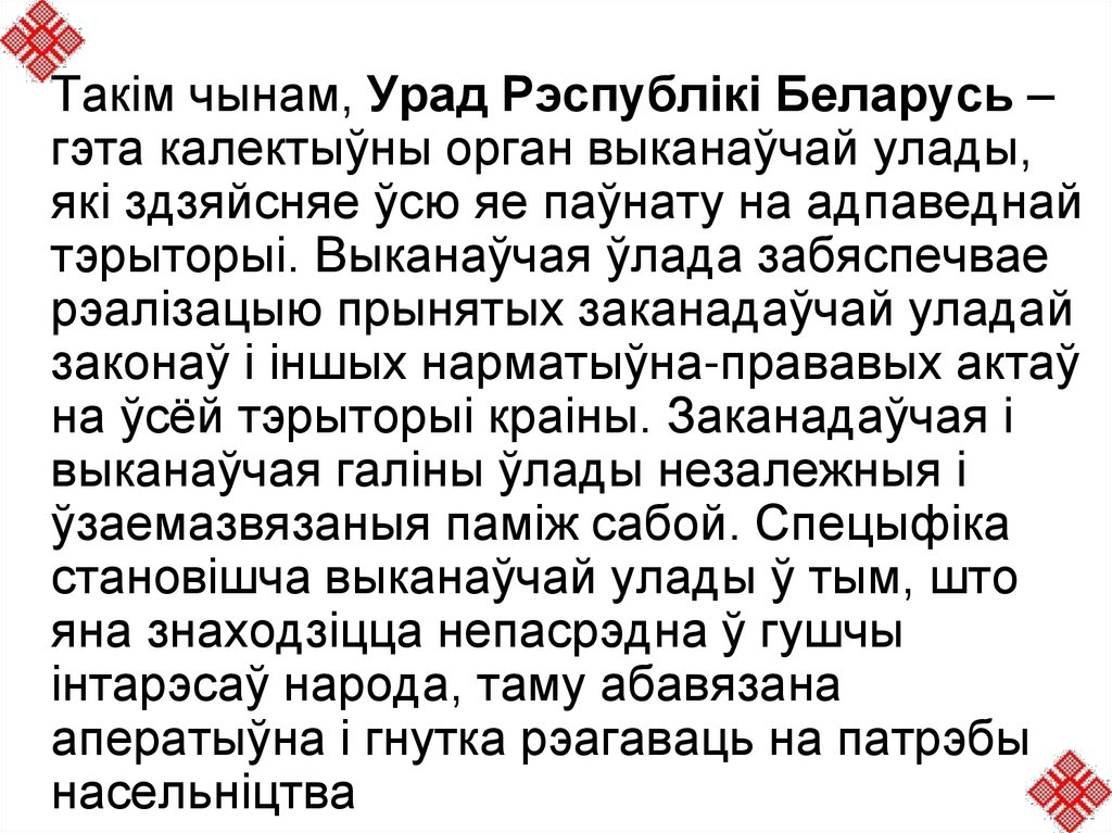 становішча выканаўчай улады ў тым, што