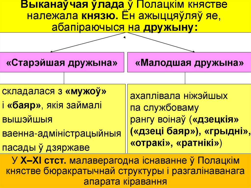 Выканаўчая ўлада ў Полацкім княственалежала князю. Ён ажыццяўляў яе,