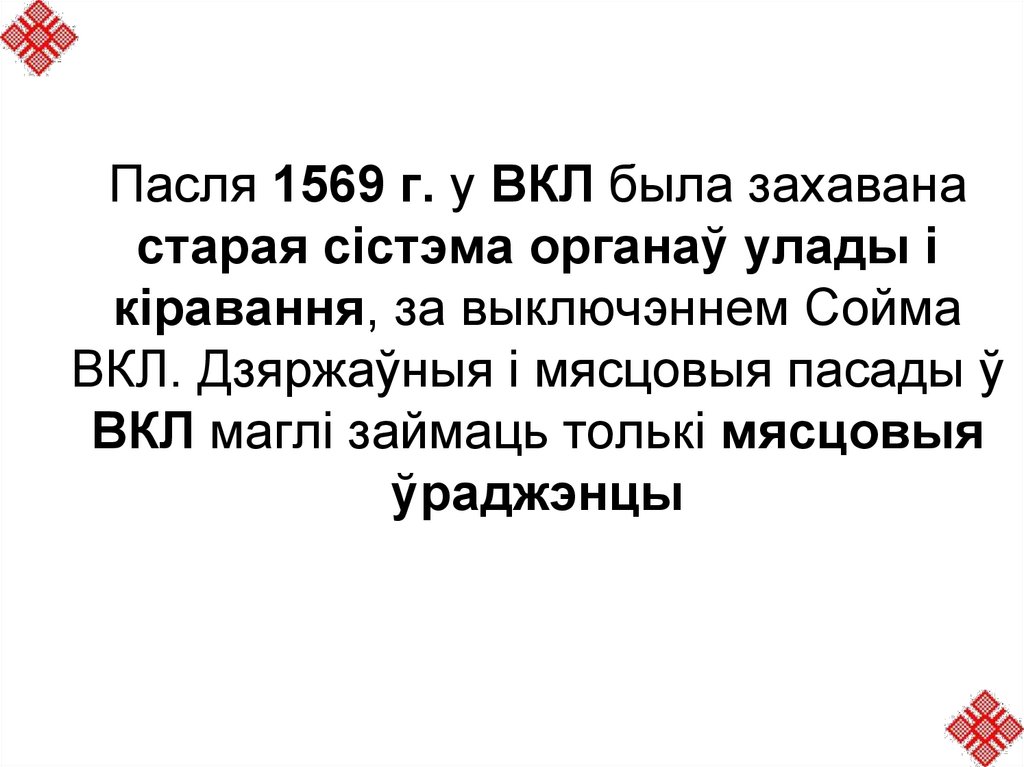 Да сярэдзіны ХVІ ст. у дзяржаве характэрнай з’явай