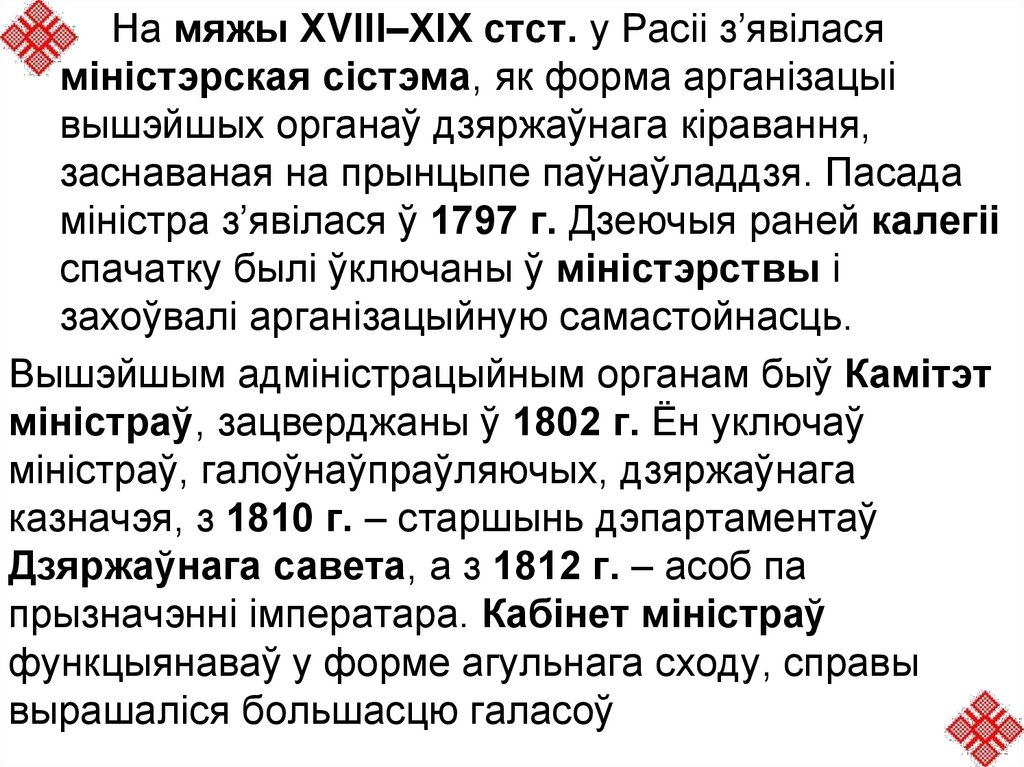 3. З’яўленне міністэрскай формы арганізацыі