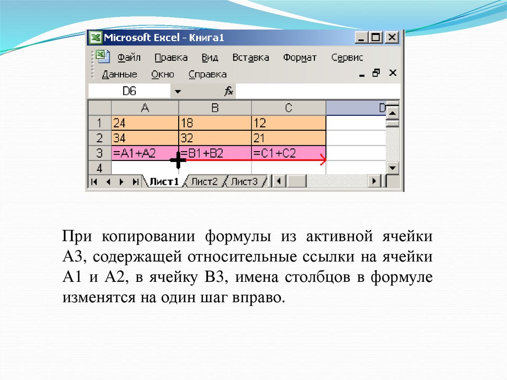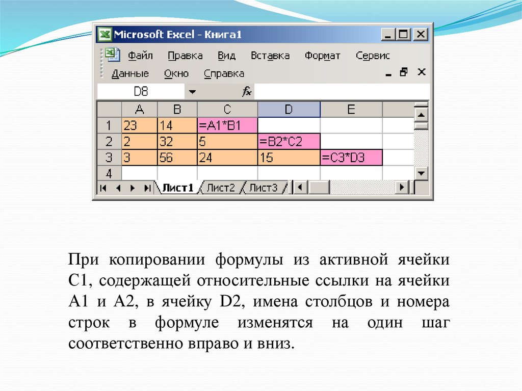 Так, при копировании формулы из активной ячейки С1,