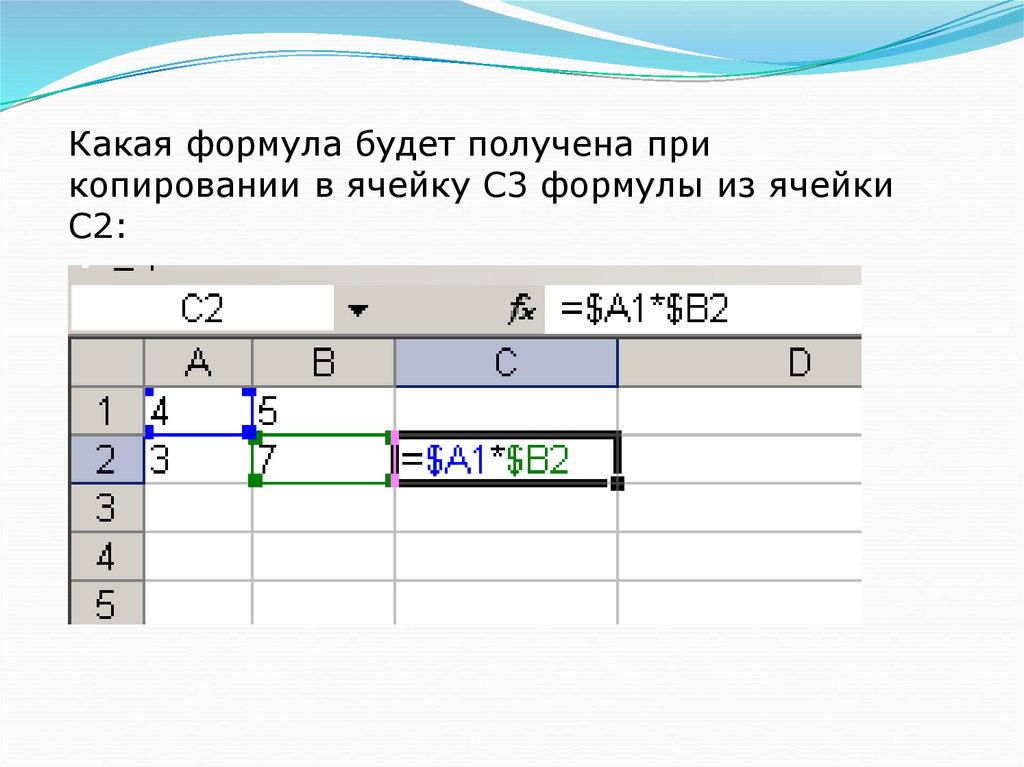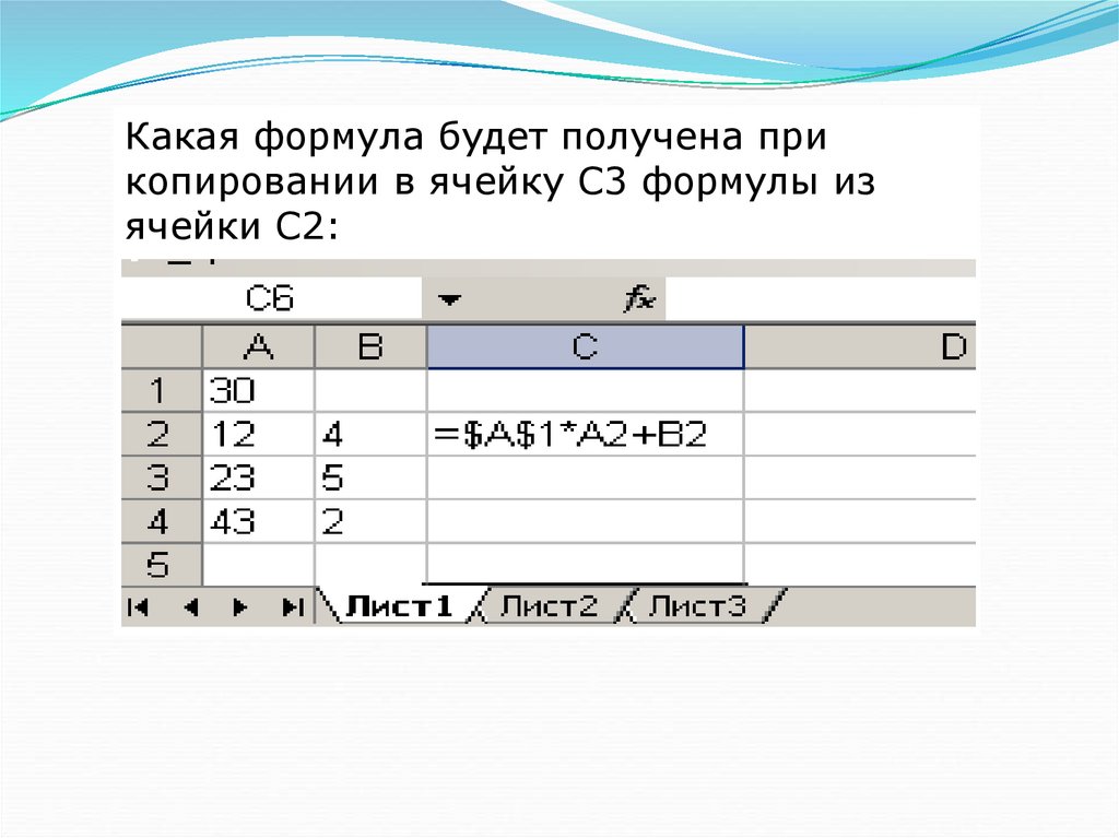 Какая формула будет получена прикопировании в ячейку С3 формулы из