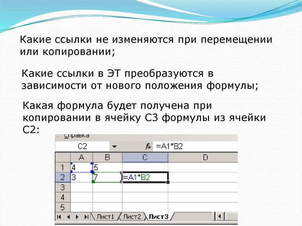 копировании в ячейку С3 формулы из ячейки