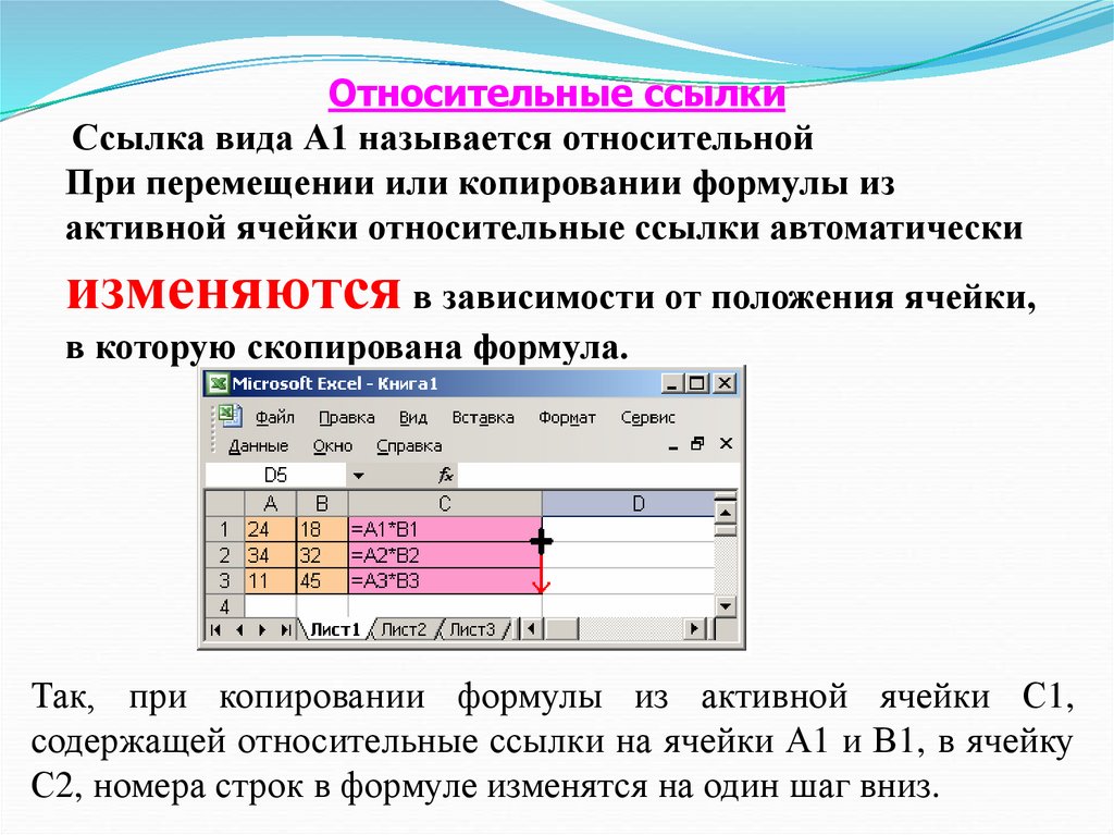 Относительные ссылкиСсылка вида А1 называется относительной